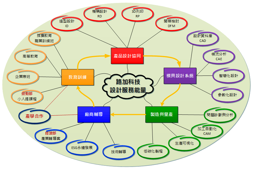 設計案件與技術服務雙主軸,涵蓋設計、研發、輔導與訓練。
